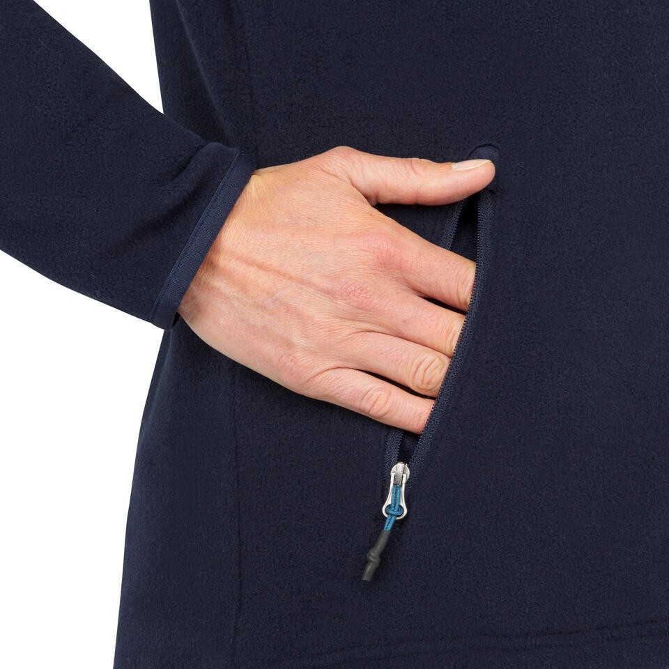 ¿Te preocupa la lluvia repentina? Nuestra chaqueta polar con efecto perlante te protegerá. El agua se desliza sobre la superficie sin penetrar, manteniéndote seco y cómodo en temperaturas entre 7 y 10 °C.
