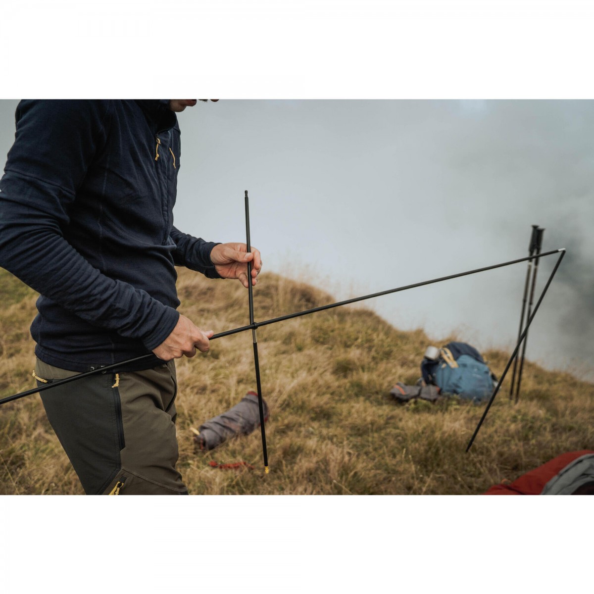 Fabricado con aluminio 7075-T6 / 6061-T6 y tubos de diferentes diámetros (20/18/16 mm), este bastón está diseñado para resistir el uso rudo en terrenos variados. La punta de tungsteno proporciona una tracción excepcional en diferentes superficies.