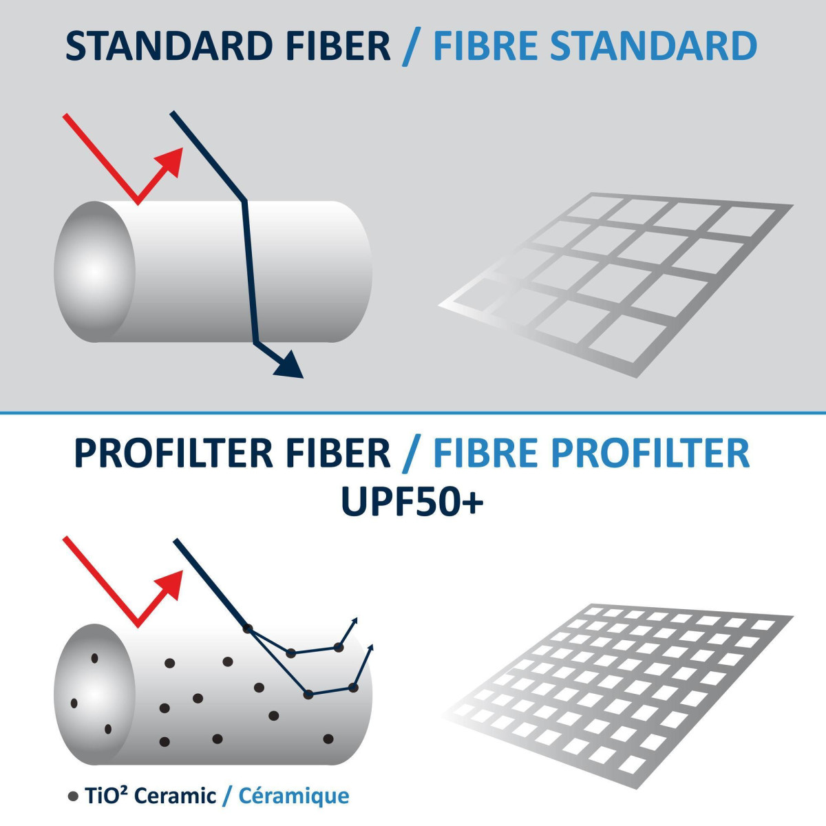 Esta camiseta cuenta con una clasificación anti-UV Tejido UPF50+. Protege del sol, incluso mojada. Bloquea mínimo el 95 % de UV ofreciendo protección solar para tu piel incluso cuando estás en el agua.  Además limita las irritaciones causadas por el contacto con la tabla.